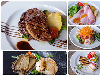 知多牛ステーキをはじめとした知多半島の食材を使った逸品の数々。
