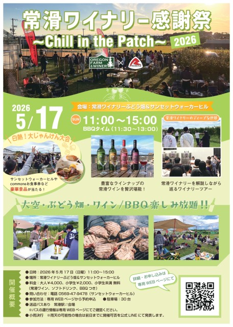 『常滑ワイナリー感謝祭2026 Chill in the Patch』の参加申込の受付がスタートしました!